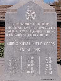 Memorial to the King’s Royal Rifle Corps. Mary Willoughby’s son Reginald Clarke belonged to the 18th Battalion. He was killed in Flanders in 1916.