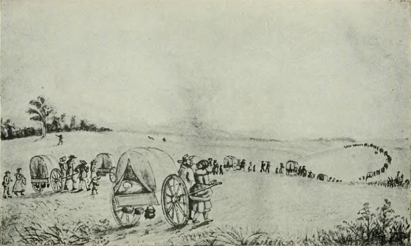 A Mormon handcart train making its way across the American territories. (Source: Wikipedia)