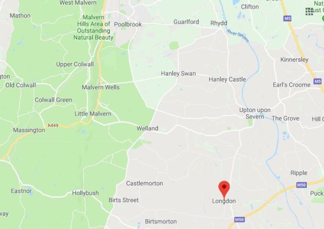 The location of Longdon, where Judith was born in 1795. Upton-upon-Severn, where she was baptised, is nearby, as is Colwall, where she died.