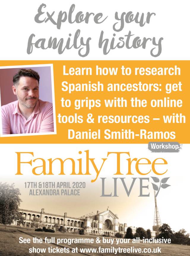 One of the characteristics of Family Tree Live is their workshops – groups of up to ten participants around a table to learn about a specific topic. I will be leading a workshop, set to take place on 18 April at 1.30PM, on Spanish genealogical research, with a special focus on online resources which anyone with an interest in this particular country should consult. There are a number of other workshops, sorted by category, which you can consult here. Remember that all lectures and workshops are included with admission, but booking is required.
