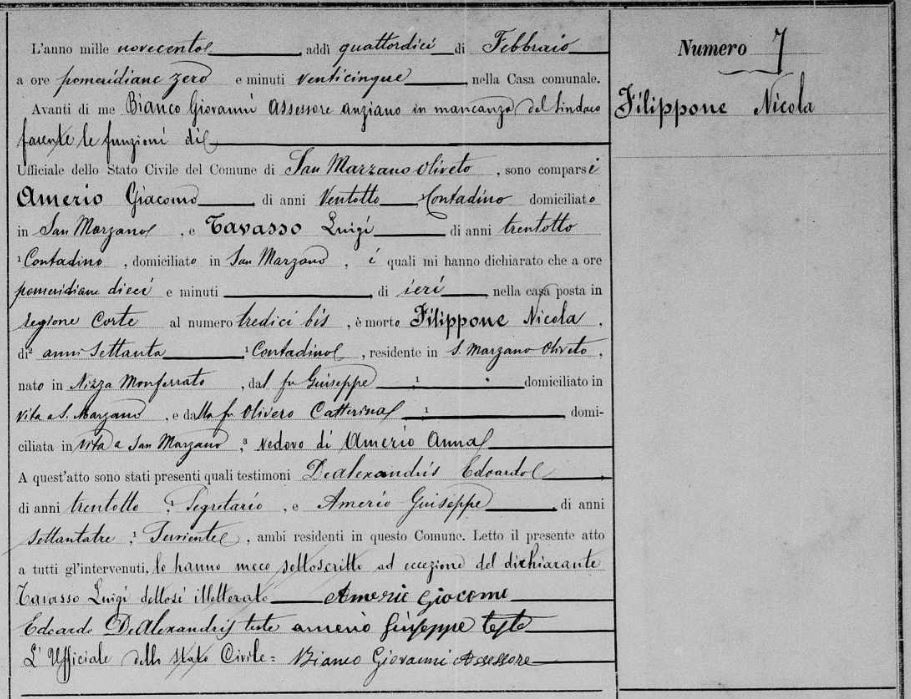 And so, my dear readers, I come to the relieving conclusion that Anna Amerio did indeed marry Nicola Filippone in 1852, and that they had a daughter together. As a married woman, Anna seems to have lived in nearby Nizza Monferrato for some time, where she probably began a relationship with Emanuele Caire. The couple and their two infant children moved back to San Marzano Oliveto, where they had their remaining brood. It was there that Anna passed away in 1893, followed by her legal husband seven years later. I know not when or where Emanuele died (he certainly survived his beloved Anna) but I am confident one day I will be able to ask one of her descendants if the story of such a remarkable woman has been passed down the generations to this day. If not, let this article reveal the story of their trailblazing ancestor.