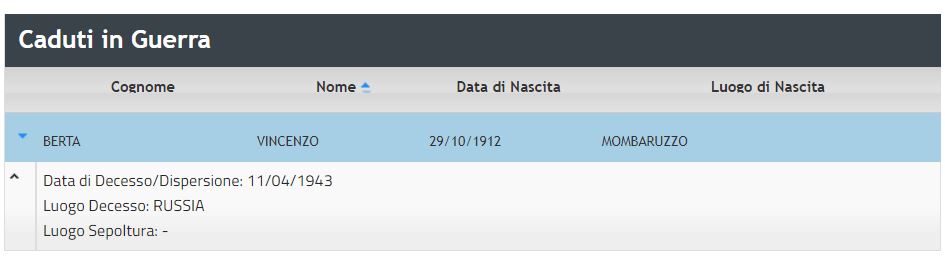 Alas, that would not the end of the family’s link to the Italian army. Another chance search for this new branch of relatives on the Italian Ministry of Defence’s database of soldiers fallen in World War II brought up a rather unexpected match: Vincenzo Berta, Giuseppina’s middle son and the one named in memory of her beloved father, died (or disappeared) in the Soviet Union in April 1943 at the age of 30. Whether he died in combat, died as a prisoner of war or simply went missing, I do not yet know. This discovery has prompted me to learn more about Fascist Italy’s disastrous campaign in Russia, as an ally of Nazi Germany. I have also sent for Vincenzo’s military records from the State Archive in Alessandria (Italy), which I hope will provide further details about his life and sad demise.
